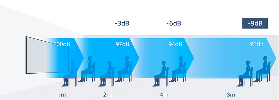 距離が離れるほど、音は小さく聞こえる