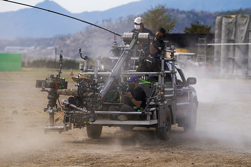 佐光様 今回は国内作品では大作ということもあり、騎馬戦のオープンロケではクレーンに乗っての撮影やDJI Ronin2との組み合わせが多く、光学ブロックを分離して使えるエクステンション(VENICEエクステンションシステム CBK-3610XS)の出番は多くありませんでした。しかし、複雑なカメラワークが求められるアクションシーンではRonin Sとエクステンション、スチルレンズの組み合わせで撮影を行っており、このような超小型ジンバルが使えたのは、やはりエクステンションで光学ブロックを小さく軽くできたおかげだと思います。
