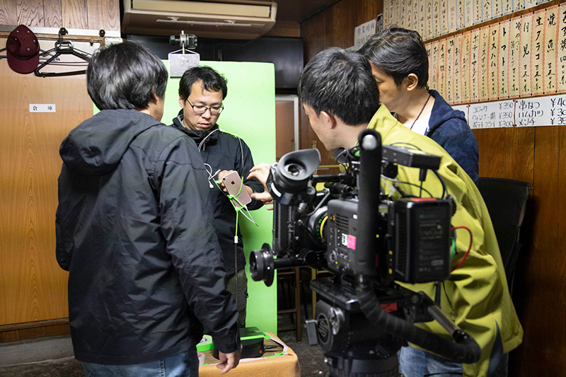 先のオレンジ色の照明のシーンでは同時にPMW-F3も使っているのですが、VENICEの限界を引き出した「艶っぽい」表現を狙ったこともあり、差は大きく出てしまいました。わかっていたことではあるのですが、ちょっと悔しさが残る部分もありました。一方、大衆食堂というか居酒屋のシーンがあるのですが、こちらではテークを重ねず一気に撮るためPMW-F3なども合わせた計4カメで撮りました。VENICEにトーンを合わせ込むのは無理があるので、他のカメラに合わせ込む前提で撮り、「艶っぽさ」を狙うシーンとは色表現でメリハリをつけました。このシーンでは各カメラでの違いはあったものの、ストレスなくマッチングをすることができました。一方で、PMW-F3もまだまだ使えるカメラだと思っていたのですが、改めて技術の進化や時代が変わったことを感じさせられました。