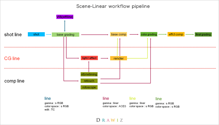 撮影からコンポジットまでの作業をシーンリニアデータで、またColor SpaceがACESで統一された。