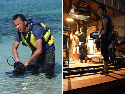 シーンごとに環境や状況に合わせて、三脚、クレーン、ステディカム、水中ハウジングなどを駆使して撮影を実施