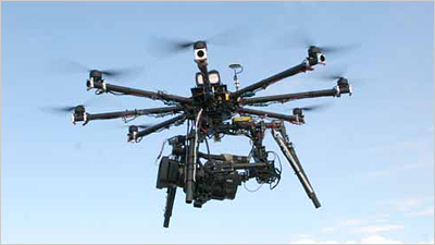 地上から150m程度の高度で、いわゆる鳥瞰的な映像を収録するには、モーターパラグライダーなどを使う方法もあります。カメラマンが自ら撮影できるメリットがありますが、残念ながらホバリングができません。移動とホバリングができるのがマルチコプターで、当社では新進気鋭のベンチャー企業であるNSi真岡さんと共同で、民生用ハンディカムHDR-PJ630Vなどを搭載し、FPU(放送用無線映像伝送装置)でHD生中継出来る機体を共同開発して、ライブなどの空撮に活用してきました。このマルチコプター運用時の課題は、重量、サイズ、それと関連する飛行時間です。