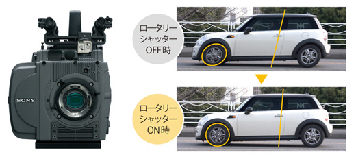 画面内を高速に移動する被写体の撮影では、CMOSセンサー特有のローリングシャッター歪みが生じますが、新開発のロータリーシャッターでCMOSを遮光して画素を読み出すことで、歪みのない画像が得られます。シャッター開角度は11.2度-180度で、連続的に変更することも可能です。またロータリーシャッターに合わせて4種類のNDフィルター(0.9/1.2/1.5/1.8)も合わせて搭載し、マットボックス内にNDフィルターを取り付けることなく光量を調節することができ、撮影の準備時間を短縮します。