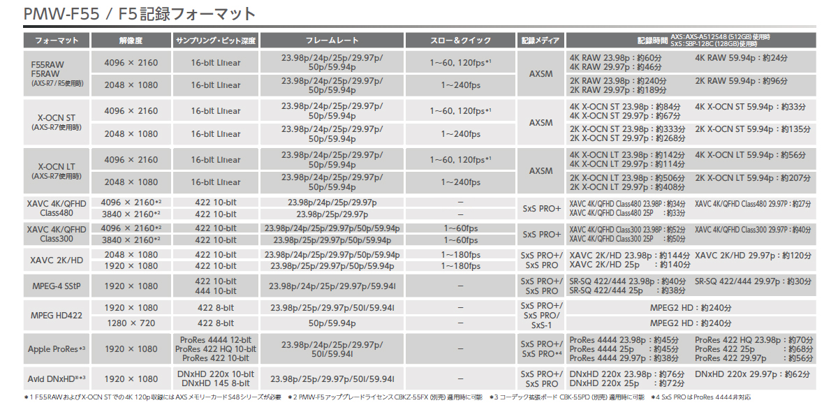 *1 XAVCおよびMPEG-4 SStPはSxS PRO+にて収録します