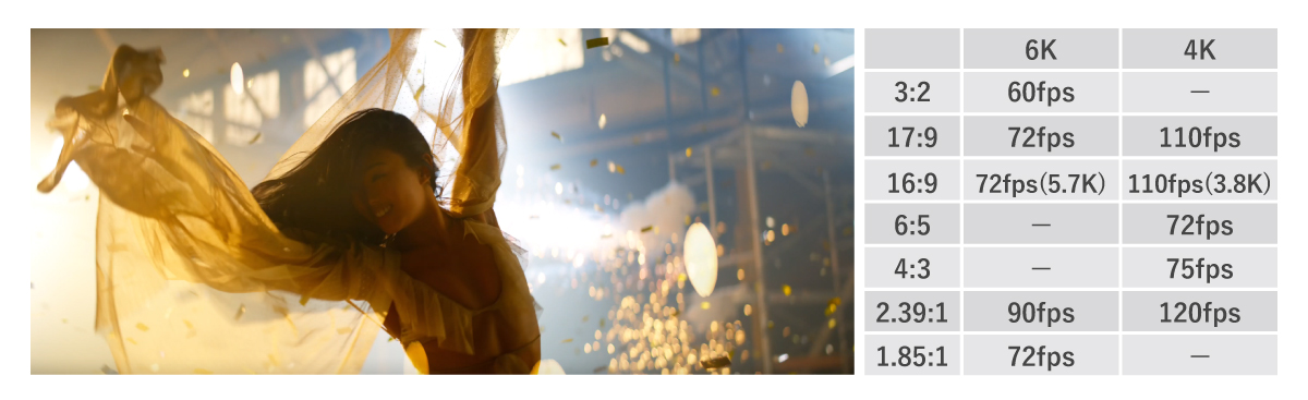 ※ 別売のハイフレームレートライセンスが必要です。6Kは別売フルフレームライセンス、4K 6:5/4:3は別売アナモフィックライセンスも必要となります