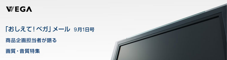 テレビはもっとすごくなれる 小寺(以下 K) ではまずは画質面から。今回はHDの信号にも手を入れられたということですが。 山田 今までのHD対応テレビでは、各社ともHDの信号は特に処理をせず、そのまま表示させていました。ヘタにいじると変になっちゃうので、なかなかいじれなかったわけです。このHDの信号処理技術に対し、我々はもう一度、精細感で勝負しよう、ということになったわけです。 K 具体的には、新たに搭載された「ベガエンジンHD」がポイントになるわけですね? 坂口 もともとSDでは、縦横倍密につくり換えるDRCという技術があったんですが、HDでも信号のつくり換えをやろうと。SDに限らずHDの信号でもそうなんですが、ビデオ信号というのは細かいところまで拡大していくと、波形の立ち上がりや立ち下がりが丸まっているんですね。「ベガエンジンHD」は、その部分を本来のあるべき形にとがらせていくことで、非圧縮の信号に近いカーブに作り換える技術なんです。 K 実際に他社のモニターと比べると、細部のディテール表現がすばらしいですね。 坂口 こだわったのは「質感」ですね。輪郭強調を強めると、輪郭部分が強調されるだけで、見た目はカチッとしたように見えます。ですが表面の精細なディテール、まるで目の前で実物を見ているような質感を出すためには、輪郭強調だけではダメなんです。そこで今回は、あえて輪郭強調は抑えめにして、より自然に精細な信号をしっかり出すことで、この質感を出す方向に注力しました。 K 放送波はMPEG-2で圧縮していますから、この効果は絶大でしょうね。 坂口 HD放送の画像って、そのままでも綺麗だと思っていたでしょうけど、本当は違うんですよ。肌の微妙なザラザラ感や、お皿の凹凸による微妙な模様など、これまでにないHDの画質を、ご覧いただきたいと思います。 音までHigh Definitionを目指す
