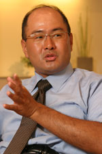 K ついにテレビにも、「S-Master」が搭載されましたね。 山田 今回の<ベガ>には、いろんな「世界初」がもり込まれていますが、「S-Master」搭載もその一つです。とにかくテレビのアンプで100Wも搭載したのは、世界初※でしょう。今回は音のHD化を目指すということで、オーディオ事業本部の商品企画担当者に参加してもらいました。 K 実際に音を聴いてみると、大音量でもゆがまない余裕はさすがだと思います。 坂口 デジタルアンプ搭載のものは他社にもありますが、同じデジタルアンプでも、「S-Master」は1bitデジタルアンプに比べて、量子化の細かさでは17倍の性能を持っています。音の再現能力も、それだけ原音に近いわけです。 K その表現力に耐えうるスピーカーも重要ですよね。 山田 今までの薄型大画面テレビでは、薄型にこだわるあまり、なかなかスピーカーの容積が取れないという制限がありました。今回はユニットそのもの、つまりコーンの素材から、マグネットの大きさ、エッジの素材など、すべてを見直しました。もちろんエンクロージャーの容積やダクトの抜き方など、パラメーター出しも含めてすべて、音の専門家が設計しています。 K サブウーファーを背面に背負わせるというアイデアはユニークですね。 山田 我々は3Dウーファーと呼んでいますが、大型モデルでは10cmのスピーカーを2個、それ以外のモデルでは8cmのものを4個搭載しています。 ウーファーの大きさやリッター数などをふまえて、どういうやり方が一番効率が良いのか、構造や強度、ユニットの特性などを上手く使った結果、こういう形になりました。それが「S-Master」と相まって、大画面に見合った迫力のある音を、薄型ボディに詰め込むことができました。 このように、次世代のテレビを作るために、「画」と「音」と「操作性」全てに妥協しない商品に仕上げました。それが今回の<ベガ>なんです。