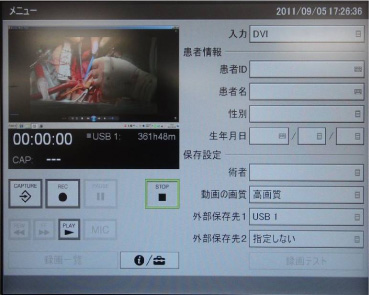 ブルーレイディスクとUSBメモリー、USBハードディスクドライブとUSBメモリーというように、2つのメディアへ同時にリアルタイム記録が可能なので、手術や検査の終了と同時に保存が完了します。