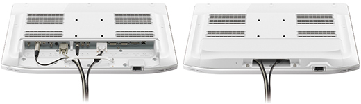 背面の端子部には取り外しが可能なカバーが取り付けられており、複数のケーブルを束ねることで配線が容易になります。また破損の原因となる血液、薬品、ほこりの侵入を防ぎ、手術室、手術用アームでの使用に適しています。