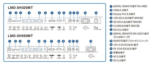 12G-SDIやDisplay Port入力端子といった各種インターフェースを備えており幅広い用途に適合します。