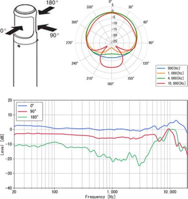 カプセル背面には、「音響移相回路」を採用することにより、表面から収音する音質のみならず、背面から収音する音質の調整も行い、単一指向性を実現しています。音源がマイクに近づくと、近接効果と呼ばれる低音域が強調される現象が発生します。C-80は、マイクカプセルの背面側にも振動膜を配置するデュアルダイアフラム構造により、C-100と同等レベルの近接効果抑制を実現します。ボーカル やボイス収録などの際に口元をマイクに近づけても、安定した録音・配信が可能です。