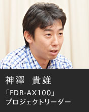 神澤(プロジェクトリーダー):今回のような大きなプロジェクトでは「向こうの作業が終わらないとこっちの作業が始められない」ということもありますが、「FDR-AX100」の開発ではメカやレンズをはじめとするすべての開発チームが、不可能なことは「できない」とはっきり示し、一度「できる」と言ったことは必ず実現してくれました。できる・できないがはっきりしていたので、同時進行の作業もスムーズに進み、予想を超える「FDR-AX100」の小型化を推進できたんだと思いますね。