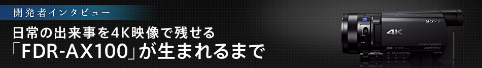 鈴木(プロダクトプランナー):2013年秋に発表した「FDR-AX1」は、こだわりの作品を高精細な4Kで残すという、新しい映像の世界を切りひらきました。ただ、豊富なマニュアル機能などより映像作品化にこだわりを持つユーザーの期待に応える反面、気軽に簡単に撮影するという面ではサイズなど難しくもあります。