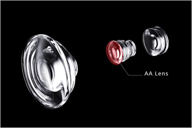 高度な成型技術を用いた新開発の薄型非球面レンズ“AA(advanced aspherical=高度非球面)レンズ”