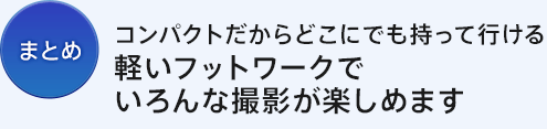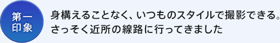 小さくて軽いので、どこにでも持って行けそうな印象がありますね。三脚と予備バッテリーを小さなバッグに詰め込んで、週末にフラッと撮影に出かけるのも楽しそうです。小さな荷物なら自然とフットワークも軽くなりますし。鉄道動画や写真は屋外での撮影がほとんどです。かばんから取り出してすぐ撮影を開始できる、ファインダーや液晶モニターを開くと直ちに電源オンというのもいいですね。移動に手間取って撮影ポイントに着いたら「もう列車が見えてる!」なんてのはよくあることですから(笑)。