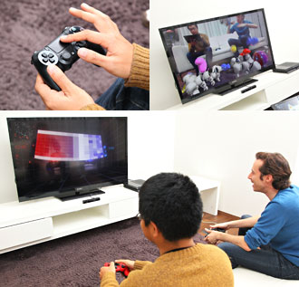 「プレイステーション 4」は緻密(ちみつ)な表現が可能な最新のグラフィック技術を備え、架空のゲーム世界を現実の風景のように描きだします。ブラビアやヘッドマウントディスプレイをはじめとするソニーのAV技術は、「プレイステーション 4」が表現するゲーム世界をあますことなく引き出します。