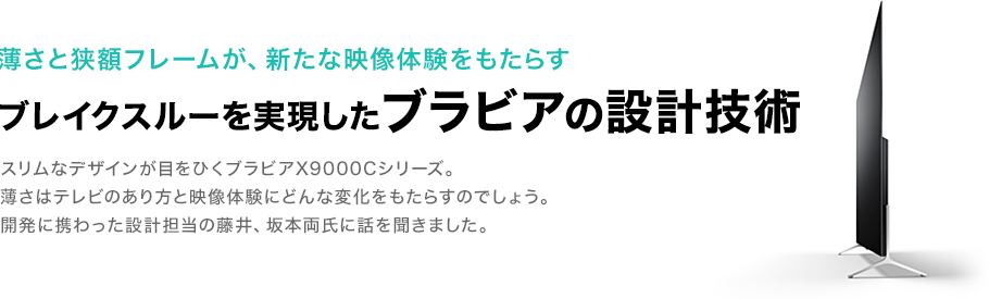 ブラビアX9000Cシリーズが実現した世界最薄(*)の画面でテレビはどう変わるのでしょう。開発者の声から薄さの秘密と魅力に迫ります。