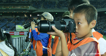 プレスキッズ『憧れの日本代表を撮ったソニーの一眼レフカメラ「α(アルファ)」を使って、サッカースタジアムで記者を体験』アジアカップ予選とキリンチャレンジカップサッカー2009の3試合で小学生がカメラマンや記者を体験する「プレスキッズ」のプログラムが行われ、延べ28人のプレスキッズが「α(アルファ)」を使って取材撮影を行いました。