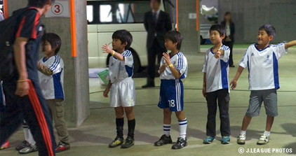 5月23日の「キリンチャレンジカップ 2012」で、小学生がカメラマンや記者を体験するJFAユースプログラム プレスキッズが行われ、プレスキッズたちが「α(アルファ)」を使って取材撮影を行いました。