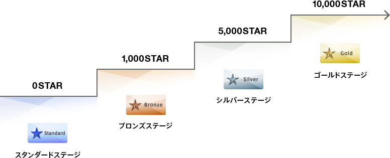 会員ステータスを一新します。STAR数を基準とした4段階にわけ、名前も「ステージ」に変わります。STARを貯めるほどにステージが上がるため、ステージアップの基準がわかりやすくなります。