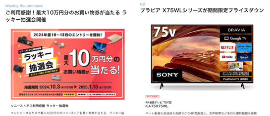 新商品やソニーストア限定商品など、気になる商品の先行予約販売のお知らせや、おトクなキャンペーンをいち早くご案内します。