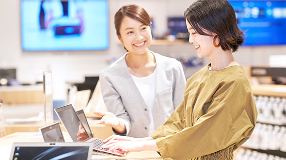 VAIO展示店舗では実際に商品を体感頂きながら、専任スタッフがお客さまに最適なVAIO選びをお手伝いいたします。