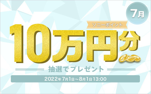 My Sony IDで応募いただくと、ソニーストアなどで利用できるソニーポイント「10万円分」が抽選で5名様に当たるキャンペーンを実施中。