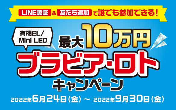 購入前抽選に参加し、期間中に対象ブラビアをご購入で最大10万円キャッシュバック。