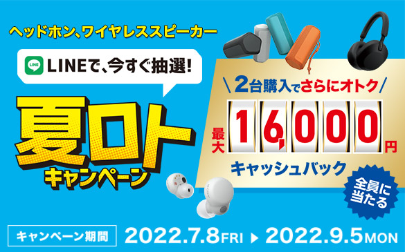 対象のヘッドホン、ワイヤレススピーカー でキャッシュバック。2台購入はさらにオトク。