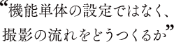 「上級者にとって最も重要なのは、作品を撮るためのワークフロー。意図した手順で各設定をいかにスムーズに変えられるかが求められます。そのため、あらゆる撮影シーンを想定しながら操作の動線パターンをシミュレーションし、ボタン配置や機能を決定しました」