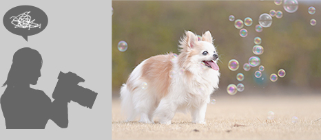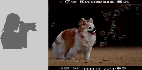 αのファインダーは露出やぼけの度合い、ホワイトバランスなどの設定が反映された状態で見えるので、思い通りの写真が撮影できます。一方、デジタル一眼レフカメラのファインダーは、撮影結果を予測しながら撮影するので、思い通りの写真が撮れるまで、設定を変更しながら撮影を繰り返す必要があるため、撮影枚数を増やしにくく、シャッターチャンスを逃す可能性も高くなります。αならではの撮影フローを意識して、完成度の高い作品を効率よく撮影しましょう。