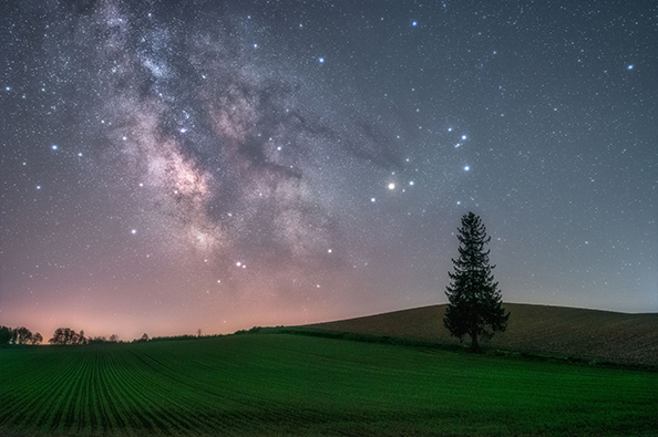 一面に広がる夜空の星を写し取りたいときに威力を発揮する広角単焦点レンズ。