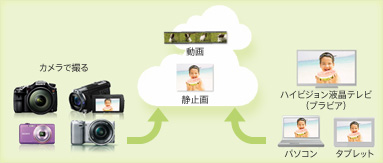 *1 USB接続による映像(AVCHD方式)や写真(JPEG/MPO形式)の取りこみは、対応したハイビジョン“ハンディカム”で行えます。AVCHD、AVCHD light以外で撮影された映像(MPEG-2など)は、USB接続による取りこみはできません。