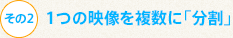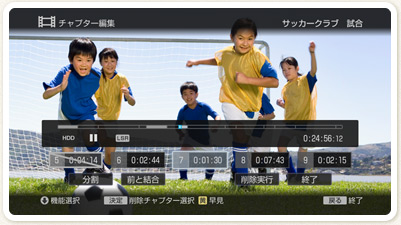 分割したい場面が表示されたら確定をするだけ。長時間撮影した容量が大きい映像を分割することができるので画質を落とさずディスクへダビングできます。