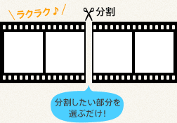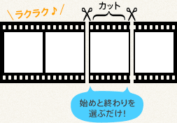 削除を開始する場面と終了する場面を選択するだけ。必要のない場面が削除され、後から見返す時もスムーズに鑑賞ができます。