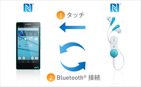 ウォークマン®の「NFC」マークをMDR-NWBT20Nの「NFC」マークにタッチ。