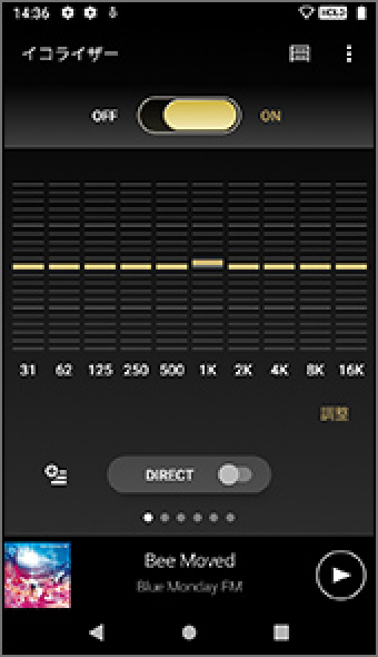 左右で切り替えられる音質設定画面が表示されます。