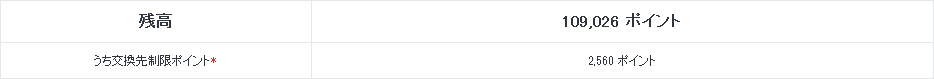 「交換先制限ポイント」をお持ちの場合は、ポイント通帳の一番上に以下のとおり表示されます。