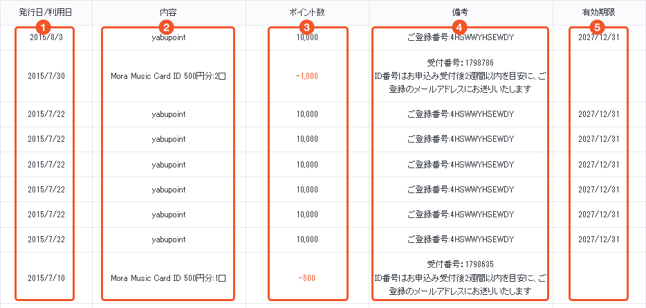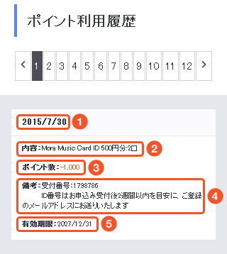 ポイント通帳の画面で、発行されたポイントや利用の履歴を確認できます。