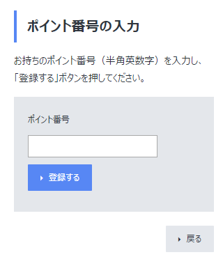 ポイント番号欄に「ポイント番号」を入力し、「登録する」ボタンを押してください。