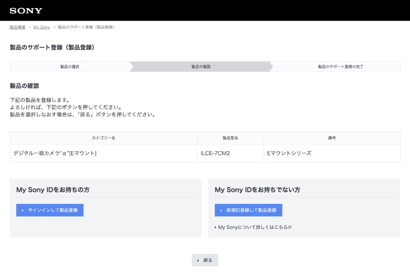 My Sonyのご登録状況に応じて、サインインもしくは新規登録に進む。