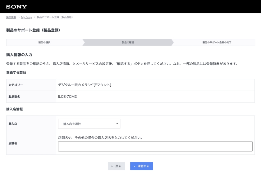購入店情報を入力して確認、登録する。