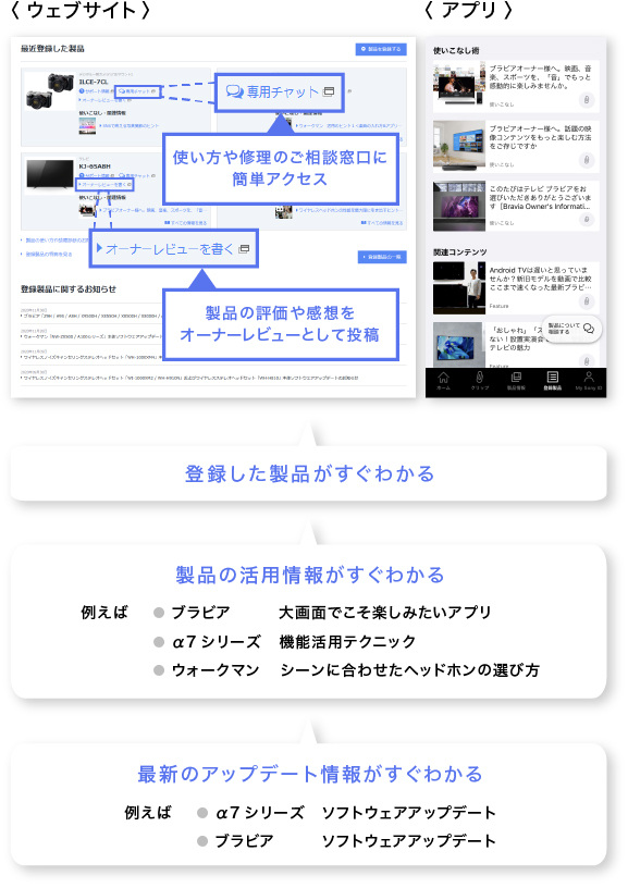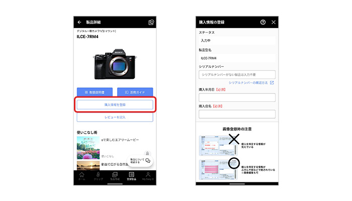 My Sonyアプリでレシートを登録することで、修理のお申し込みがかんたんにできます*2。チャット相談などサポート機能も充実。
