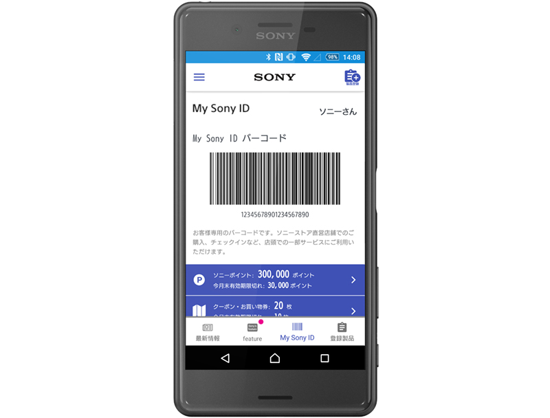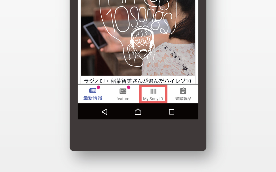 My Sonyアプリ画面最下段の「My Sony ID」アイコンをタップしてご覧ください。