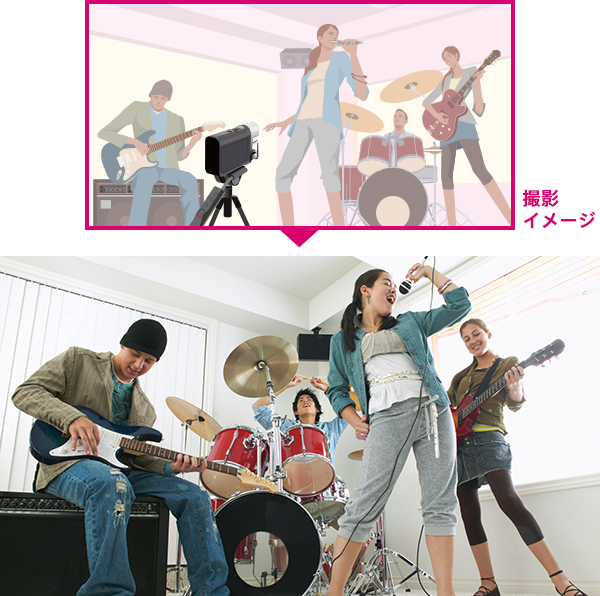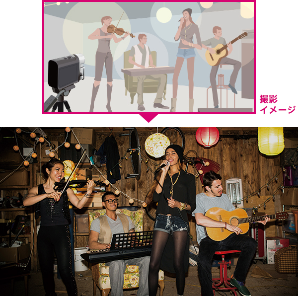 ライブ会場の空気感までリアルに収録。暗所に強いから表情もしっかり撮れる。