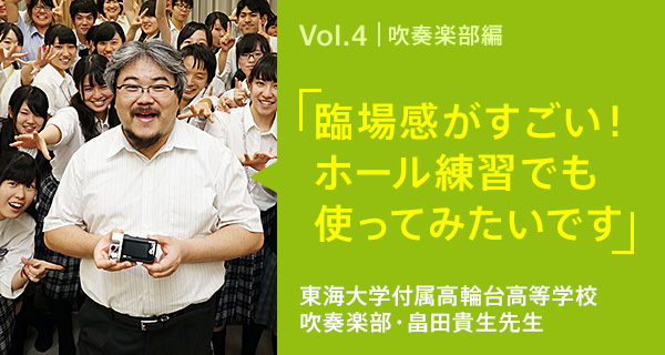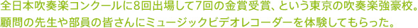 全日本吹奏楽コンクールに8回出場して7回の金賞受賞、という東京の吹奏楽強豪校。顧問の先生や部員の皆さんにミュージックビデオレコーダーを体験してもらった。