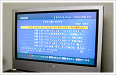 デジタル放送を見ている最中にリモコンの「番組表」を一押しすると、番組表が画面内に現れる。番組表は透過状態なので、後ろで流れている番組の映像もうっすら見ることができる。チャンネル別・時間別もあり、さらにジャンル・キーワードで検索することも可能。見たい番組が見つかれば、リモコンで選択して、すぐに視聴開始。