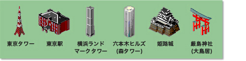 わかりやすい地図表示記号に加え、有名な建造物などは立体的なイラストで表示します。