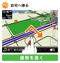 ・屋根を描くだけで、現在地から自宅までのルート探索が開始されます。