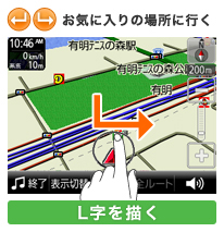 ・L字または逆向きのL字を描けば、「お気に入り1」や「お気に入り2」に設定してある場所へのルート探索が開始されます。